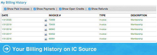 IC Source Members can view their invoices and other financial transactions under My Company → Billing.